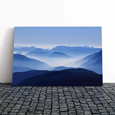 Big Box Art Canvas Print Wall Landscape Blue Misty Mountains Mounted and Stretched Frame Picture Home Decor for Kitchen, Living Room, Bedroom, Hallway, Multi Colour, 24x16 Inch