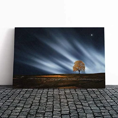 Big Box Art Canvas Print Wall Landscape Dusk Lone Tree (1) Mounted and Stretched Frame Picture Home Decor for Kitchen, Living, Dining Room, Bedroom, Hallway, Multi Colour, 20x14 Inch