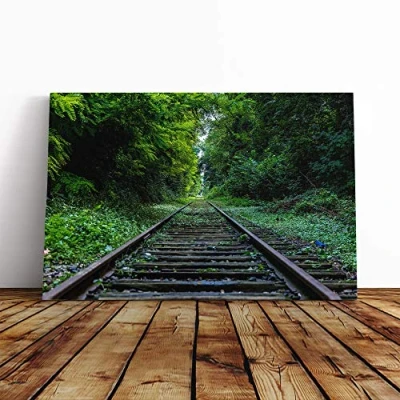 Big Box Art Canvas Print Wall Landscape Foreat Train Track Mounted and Stretched Frame Picture Home Decor for Kitchen, Living, Dining Room, Bedroom, Hallway, Multi Colour, 30x20 Inch