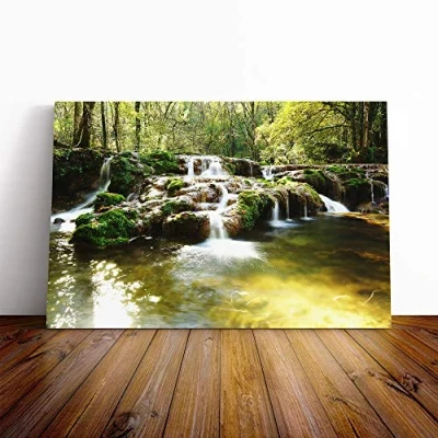 Big Box Art Canvas Print Wall Landscape Forest Wood Stream (6) Mounted and Stretched Frame Picture Home Decor for Kitchen, Living Room, Bedroom, Hallway, Multi Colour, 30x20 Inch