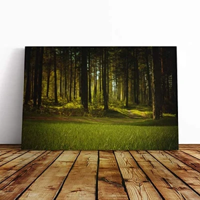 Big Box Art Canvas Print Wall Landscape Forest Woodland Mounted and Stretched Frame Picture Home Decor for Kitchen, Living, Dining Room, Bedroom, Hallway, Multi Colour, 24x16 Inch