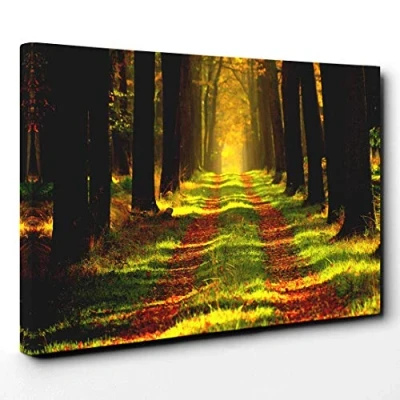 Big Box Art Canvas Print Wall Landscape Forest Woodland Path Mounted and Stretched Frame Picture Home Decor for Kitchen, Living Room, Bedroom, Hallway, Multi Colour, 20x14 Inch