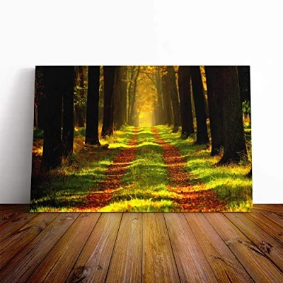 Big Box Art Canvas Print Wall Landscape Forest Woodland Path Mounted and Stretched Frame Picture Home Decor for Kitchen, Living Room, Bedroom, Hallway, Multi Colour, 24x16 Inch