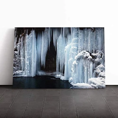 Big Box Art Canvas Print Wall Landscape Frozen Waterfall Mounted and Stretched Frame Picture Home Decor for Kitchen, Living, Dining Room, Bedroom, Hallway, Multi Colour, 24x16 Inch
