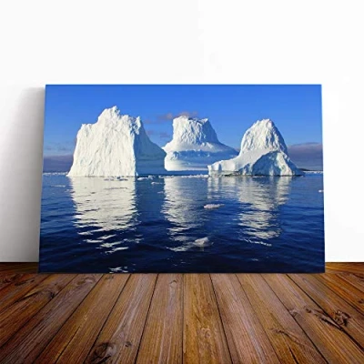 Big Box Art Canvas Print Wall Landscape Icebergs (2) Mounted and Stretched Frame Picture Home Decor for Kitchen, Living, Dining Room, Bedroom, Hallway, Multi Colour, 24x16 Inch