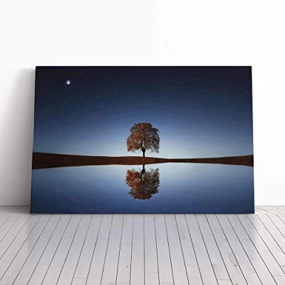 Big Box Art Canvas Print Wall Landscape Lone Tree (3) Mounted and Stretched Frame Picture Home Decor for Kitchen, Living, Dining Room, Bedroom, Hallway, Multi Colour, 24x16 Inch