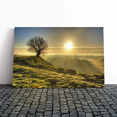 Big Box Art Canvas Print Wall Landscape Lone Tree Sunrise Mounted and Stretched Frame Picture Home Decor for Kitchen, Living, Dining Room, Bedroom, Hallway, Multi Colour, 20x14 Inch