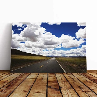 Big Box Art Canvas Print Wall Landscape Road and Clouds (2) Mounted Stretched Frame Picture Home Decor for Kitchen, Living, Dining Room, Bedroom, Hallway, Multi Colour, 20x14 Inch