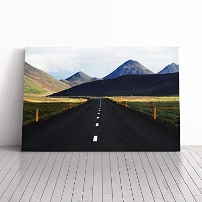 Big Box Art Canvas Print Wall Landscape Road Iceland Mounted and Stretched Frame Picture Home Decor for Kitchen, Living, Dining Room, Bedroom, Hallway, Multi Colour, 20x14 Inch