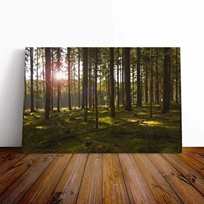 Big Box Art Canvas Print Wall Landscape Sunlight Through Forest Woodland (3) Mounted & Stretched Frame Picture Home Decor for Kitchen, Living Room, Bedroom, Multi Colour, 20x14 Inch