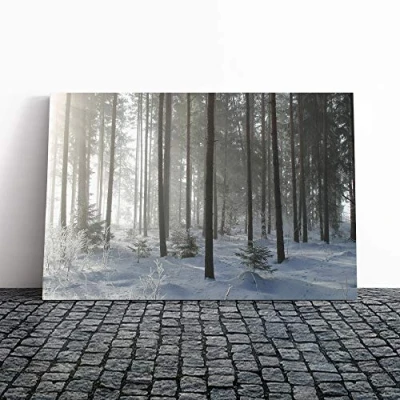 Big Box Art Canvas Print Wall Landscape Sunlight Through Forest Woodland (4) Mounted & Stretched Frame Picture Home Decor for Kitchen, Living Room, Bedroom, Multi Colour, 20x14 Inch