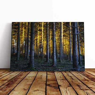 Big Box Art Canvas Print Wall Landscape Sunlight Through Forest Woodland (5) Mounted & Stretched Frame Picture Home Decor for Kitchen, Living Room, Bedroom, Multi Colour, 30x20 Inch