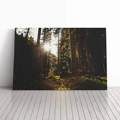 Big Box Art Canvas Print Wall Landscape Sunlight Through Forest Woodland (6) Mounted & Stretched Frame Picture Home Decor for Kitchen, Living Room, Bedroom, Multi Colour, 30x20 Inch