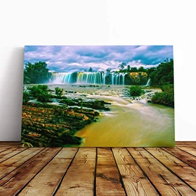 Big Box Art Canvas Print Wall Landscape Waterfall (7) Mounted and Stretched Frame Picture Home Decor for Kitchen, Living, Dining Room, Bedroom, Hallway, Multi Colour, 30x20 Inch