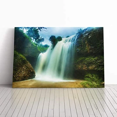 Big Box Art Canvas Print Wall Landscape Waterfall (8) Mounted and Stretched Frame Picture Home Decor for Kitchen, Living, Dining Room, Bedroom, Hallway, Multi Colour, 20x14 Inch