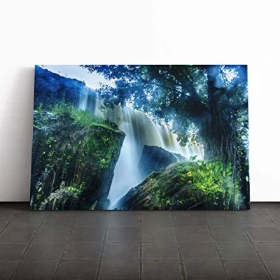 Big Box Art Canvas Print Wall Landscape Waterfall (9) Mounted and Stretched Frame Picture Home Decor for Kitchen, Living, Dining Room, Bedroom, Hallway, Multi Colour, 30x20 Inch