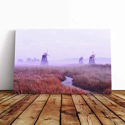 Big Box Art Canvas Print Wall Landscape Windmill and Stream Mounted Stretched Frame Picture Home Decor for Kitchen, Living, Dining Room, Bedroom, Hallway, Multi Colour, 30x20 Inch