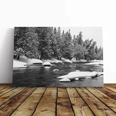 Big Box Art Canvas Print Wall Landscape Winter Forest and Lake Mounted Stretched Frame Picture Home Decor for Kitchen, Living Room, Bedroom, Hallway, Multi Colour, 24x16 Inch