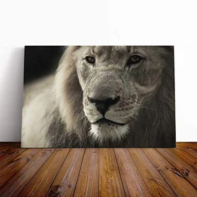 Big Box Art Canvas Print Wall Lion 2 Mounted and Stretched Frame Picture Home Decor for Kitchen, Living, Dining Room, Bedroom, Hallway, Multi Colour, 20x14 Inch