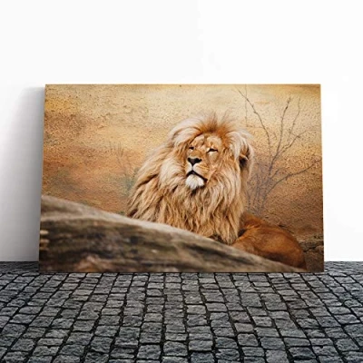 Big Box Art Canvas Print Wall Lion (3) Mounted and Stretched Frame Picture Home Decor for Kitchen, Living, Dining Room, Bedroom, Hallway, Multi Colour, 20x14 Inch