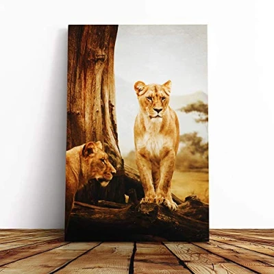 Big Box Art Canvas Print Wall Lion Lioness (2) Mounted and Stretched Frame Picture Home Decor for Kitchen, Living, Dining Room, Bedroom, Hallway, Multi Colour, 20x14 Inch
