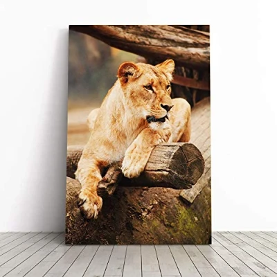 Big Box Art Canvas Print Wall Lioness Lion Mounted and Stretched Frame Picture Home Decor for Kitchen, Living, Dining Room, Bedroom, Hallway, Multi Colour, 20x14 Inch