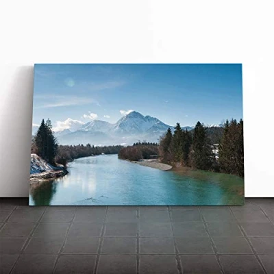 Big Box Art Canvas Print Wall Mountain Landscape, Lake and Forest Mounted & Stretched Frame Picture Home Decor for Kitchen, Living Room, Bedroom, Hallway, Multi Colour, 20x14 Inch