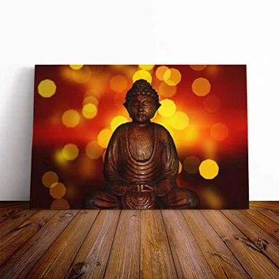 Big Box Art Canvas Print Wall Oriental Buddha (2) Mounted and Stretched Frame Picture Home Decor for Kitchen, Living, Dining Room, Bedroom, Hallway, Multi Colour, 24x16 Inch