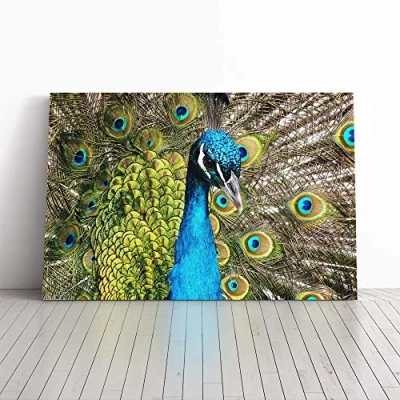 Big Box Art Canvas Print Wall Peacock Bird Mounted and Stretched Frame Picture Home Decor for Kitchen, Living, Dining Room, Bedroom, Hallway, Multi Colour, 24x16 Inch