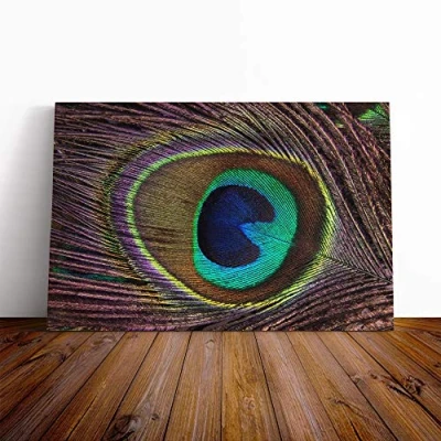 Big Box Art Canvas Print Wall Peacock Feather Mounted and Stretched Frame Picture Home Decor for Kitchen, Living, Dining Room, Bedroom, Hallway, Multi Colour, 20x14 Inch