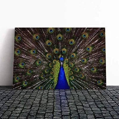 Big Box Art Canvas Print Wall Peacock Mounted and Stretched Frame Picture Home Decor for Kitchen, Living, Dining Room, Bedroom, Hallway, Multi Colour, 24x16 Inch