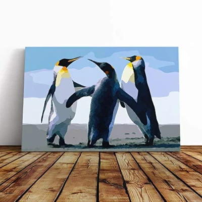 Big Box Art Canvas Print Wall Penguins Mounted and Stretched Frame Picture Home Decor for Kitchen, Living, Dining Room, Bedroom, Hallway, Multi Colour, 20x14 Inch