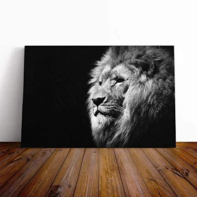 Big Box Art Canvas Print Wall Proud Lion 2 Mounted and Stretched Frame Picture Home Decor for Kitchen, Living, Dining Room, Bedroom, Hallway, Multi Colour, 24x16 Inch