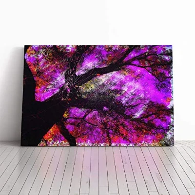 Big Box Art Canvas Print Wall Purple Abstract Tree Mounted and Stretched Frame Picture Home Decor for Kitchen, Living, Dining Room, Bedroom, Hallway, Multi Colour, 24x16 Inch