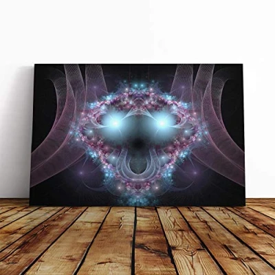 Big Box Art Canvas Print Wall Purple Fractal Abstract (11) Mounted and Stretched Frame Picture Home Decor for Kitchen, Living Room, Bedroom, Hallway, Multi Colour, 20x14 Inch