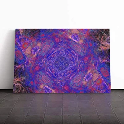 Big Box Art Canvas Print Wall Purple Fractal Abstract (13) Mounted and Stretched Frame Picture Home Decor for Kitchen, Living Room, Bedroom, Hallway, Multi Colour, 20x14 Inch