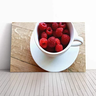 Big Box Art Canvas Print Wall Rasberries in a Cup Mounted and Stretched Frame Picture Home Decor for Kitchen, Living, Dining Room, Bedroom, Hallway, Multi Colour, 20x14 Inch