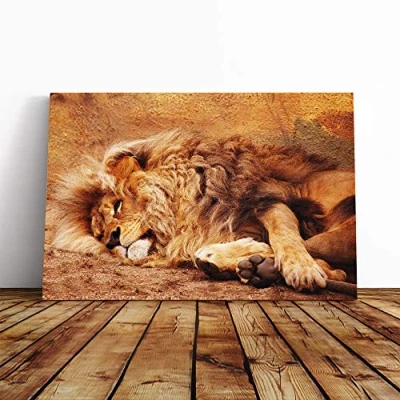 Big Box Art Canvas Print Wall Resting Lion Mounted and Stretched Frame Picture Home Decor for Kitchen, Living, Dining Room, Bedroom, Hallway, Multi Colour, 24x16 Inch
