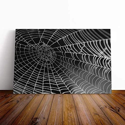 Big Box Art Canvas Print Wall Spider Cobweb (3) Mounted and Stretched Frame Picture Home Decor for Kitchen, Living, Dining Room, Bedroom, Hallway, Multi Colour, 20x14 Inch