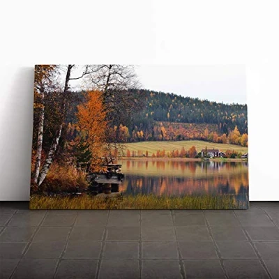 Big Box Art Canvas Print Wall Sweden Forest and Lake Landscape (1) Mounted & Stretched Frame Picture Home Decor for Kitchen, Living Room, Bedroom, Hallway, Multi Colour, 30x20 Inch