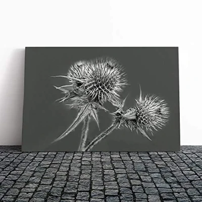 Big Box Art Canvas Print Wall Thistle Flower (2) Mounted and Stretched Frame Picture Home Decor for Kitchen, Living, Dining Room, Bedroom, Hallway, Multi Colour, 20x14 Inch