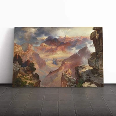 Big Box Art Canvas Print Wall Thomas Moran Rocky Landscape Mounted and Stretched Frame Picture Home Decor for Kitchen, Living, Dining Room, Bedroom, Hallway, Multi Colour, 30x20 Inch