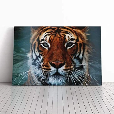 Big Box Art Canvas Print Wall Tiger 8 Mounted and Stretched Frame Picture Home Decor for Kitchen, Living, Dining Room, Bedroom, Hallway, Multi Colour, 30x20 Inch