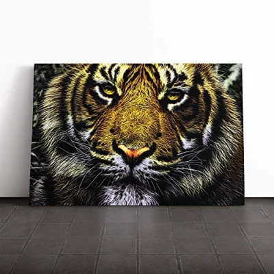 Big Box Art Canvas Print Wall Tiger Mounted and Stretched Frame Picture Home Decor for Kitchen, Living, Dining Room, Bedroom, Hallway, Multi Colour, 24x16 Inch