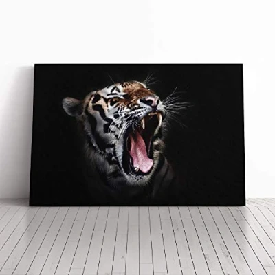 Big Box Art Canvas Print Wall Tiger Mounted and Stretched Frame Picture Home Decor for Kitchen, Living, Dining Room, Bedroom, Hallway, Multi Colour, 24x16 Inch