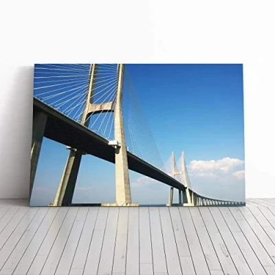 Big Box Art Canvas Print Wall Vasco da Gama Bridge Portugal Lisbon Mounted & Stretched Frame Picture Home Decor for Kitchen, Living Room, Bedroom, Hallway, Multi Colour, 24x16 Inch