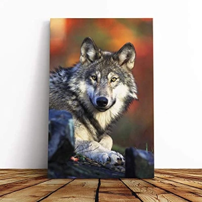 Big Box Art Canvas Print Wall Wolf Resting Mounted and Stretched Frame Picture Home Decor for Kitchen, Living, Dining Room, Bedroom, Hallway, Multi Colour, 20x14 Inch
