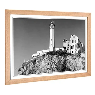 Big Box Art Framed Print of Architecture Lighthouse Alcatraz, California Design Wall Picture Home Decor for Kitchen, Living Room, Bedroom, Hallway, Oak, A2 / 24.5x18 Inch 62x45cm