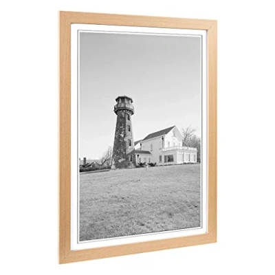 Big Box Art Framed Print of Architecture Lighthouse Sands Point, NY Design Wall Picture Home Decor for Kitchen, Living Room, Bedroom, Hallway, Oak, A2 / 24.5x18 Inch 62x45cm