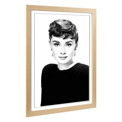 Big Box Art Framed Print of Audrey Hepburn (5) Design Wall Picture Home Decor for Kitchen, Living, Dining Room, Lounge, Bedroom, Hallway, Office, Oak, A2 / 24.5x18 Inch 62x45cm
